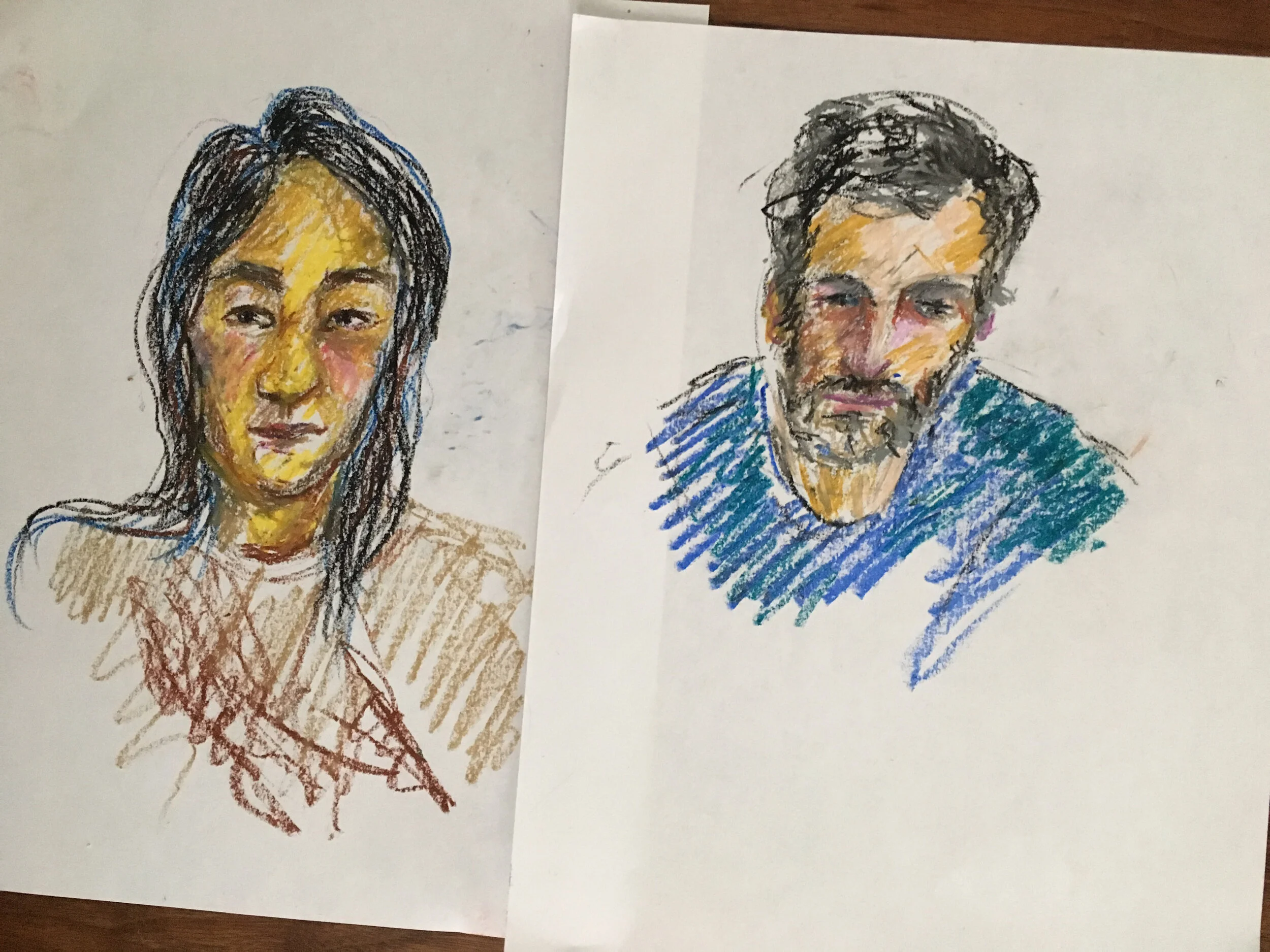 Process drawing about revolution. 18” x 22” , charcoal, pastels, and eraser, 2020